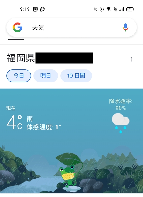 Googleカエル天気!カエルが教える天気予報と気温情報